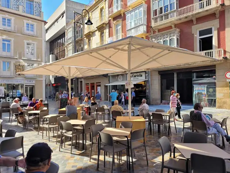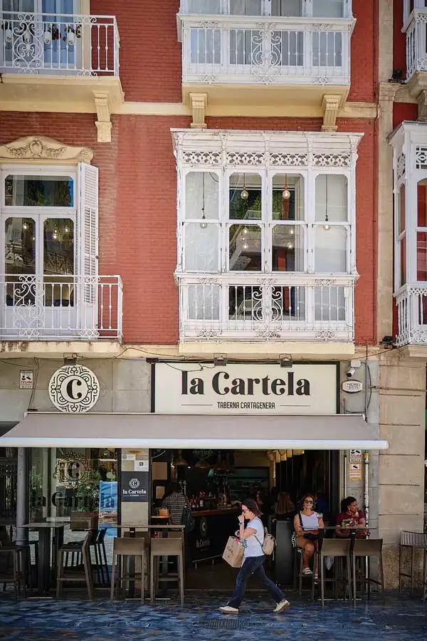 Restaurante La Cartela está situado en pleno centro de Cartagena frente al monumento al proceisonista y con vistas al Gran Hotel, icono del modernismo en la ciudad.